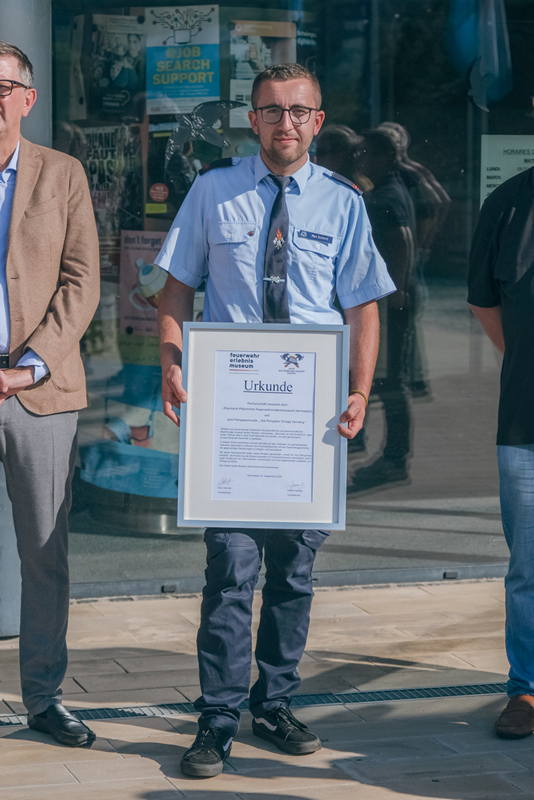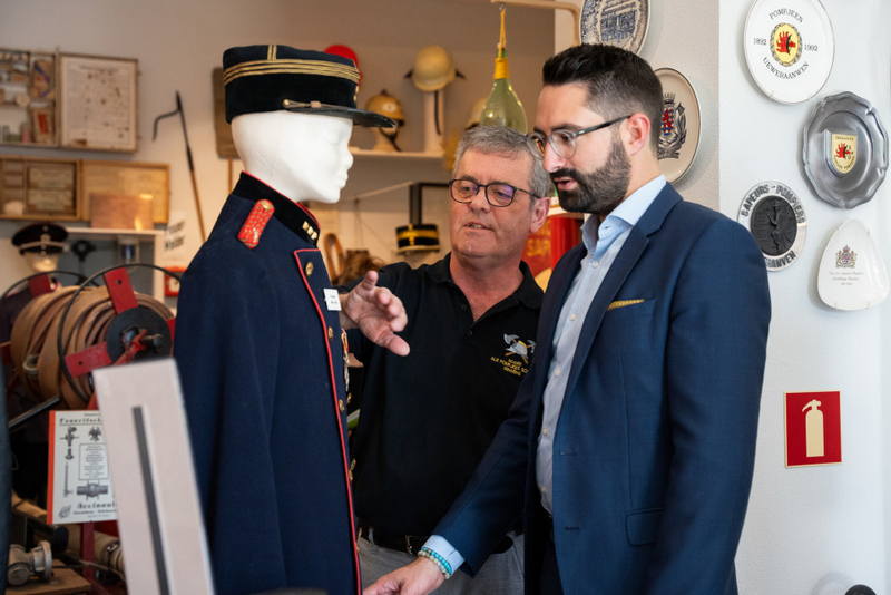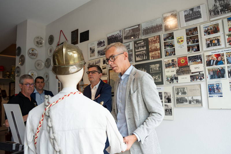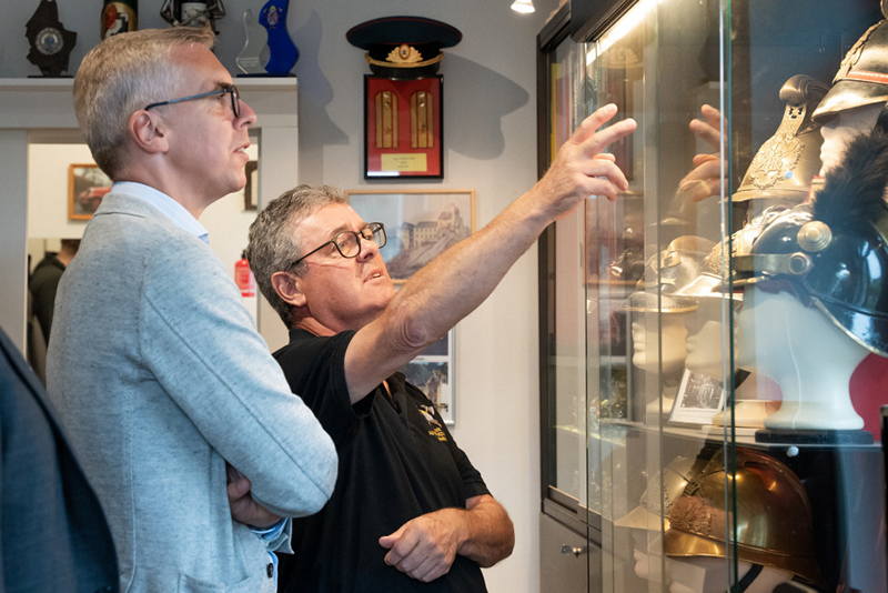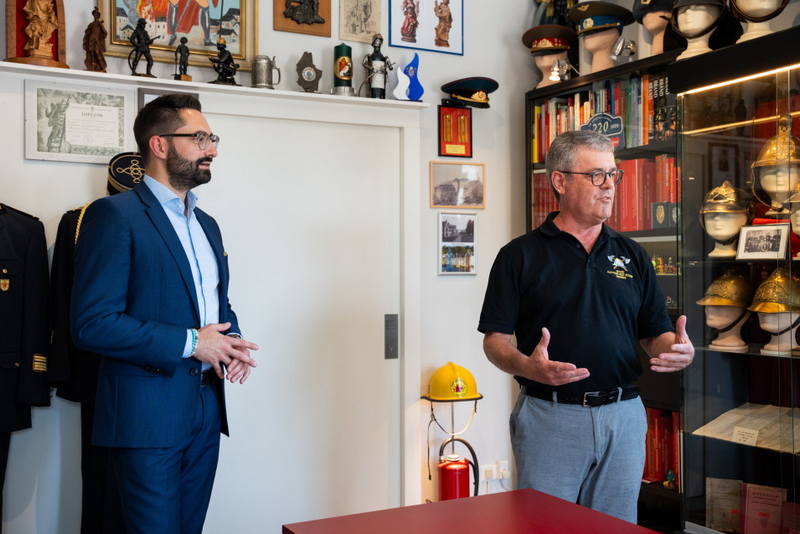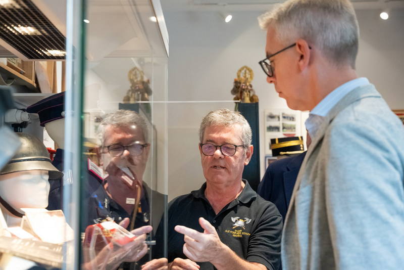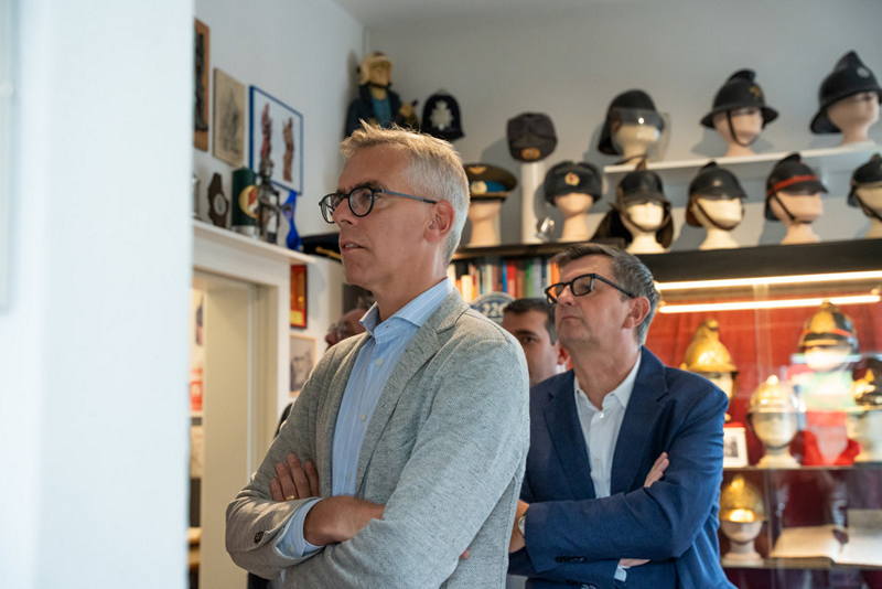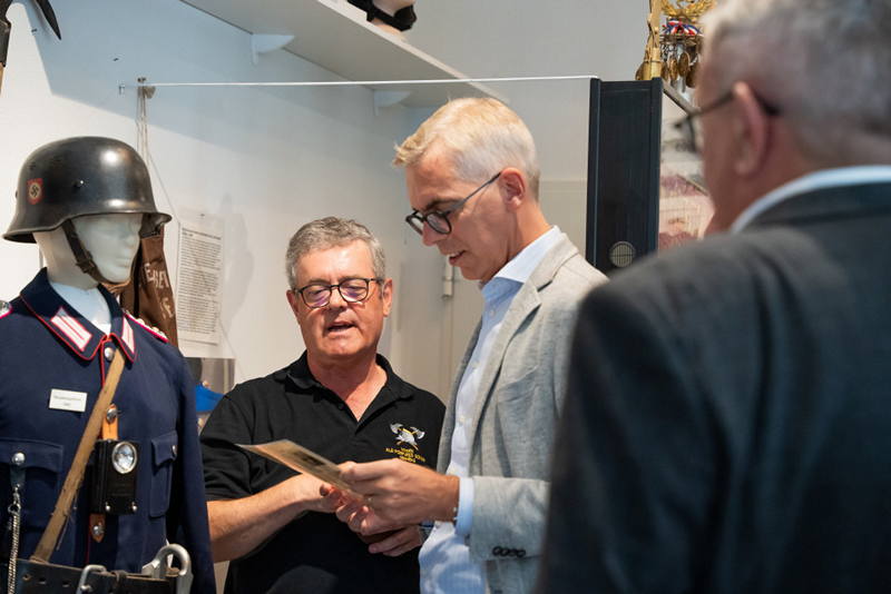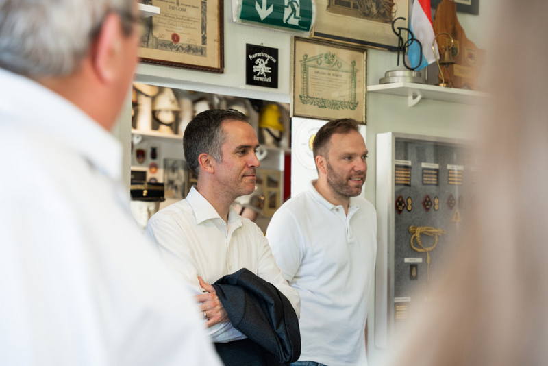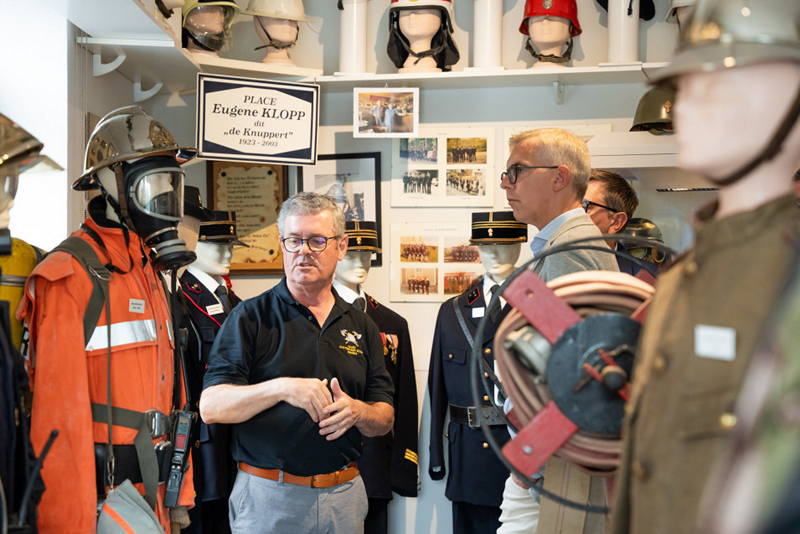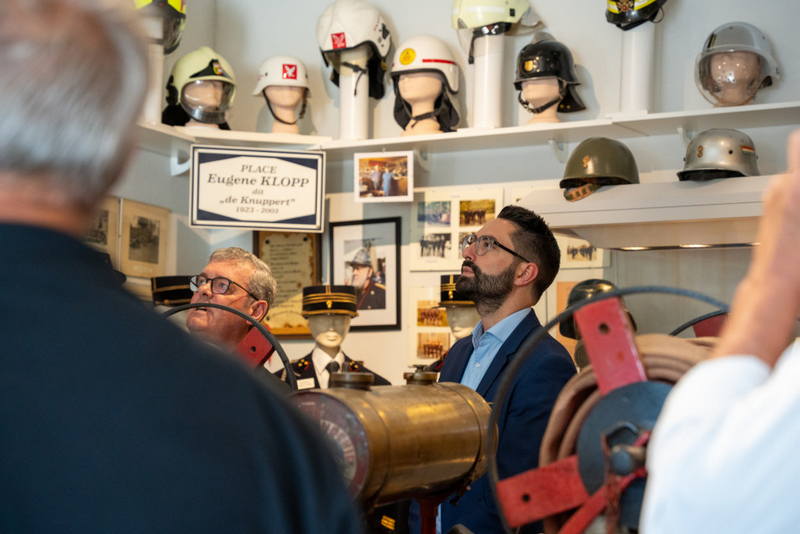 Am Freitag, den 30. August, hatten wir die große Ehre, den Innenminister, Herrn Léon Gloden, sowie den Generaldirektor der Zivilsicherheit, Herrn Alain Becker, im Pompjeesmusée in Senneng zu begrüßen Wie üblich von Gilbert Sauber geleitet, der uns durch die Geschichte und Entwicklung der Feuerwache führte.