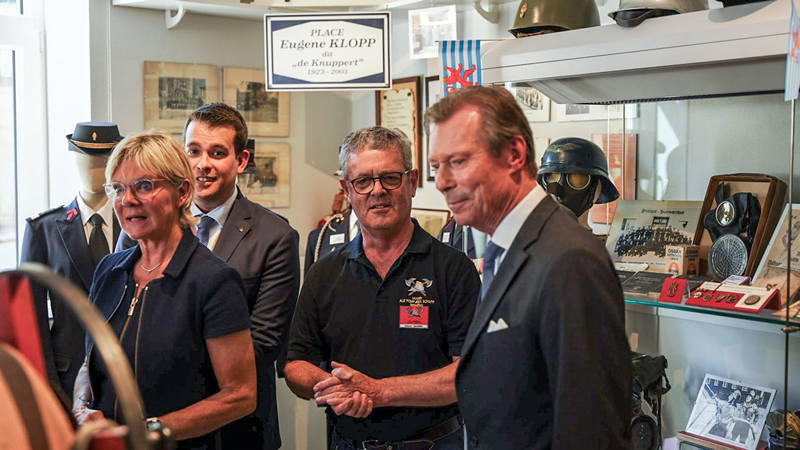De Gilbert Sauber huet vun der Geleeënheet profitéiert, fir dem Grand-Duc Henri an der Ministesch Martine Hansen onse klenge Musée ze weisen an de Grand-Duc huet sech begeeschtert gewise vun all deene schéine Schätz déi hien do konnt entdecken. Villmools Merci fir dëse flotte Moment!